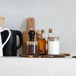 Willa oferuje miejsce do jedzenia z mini barem i urządzeniem do parzenia kawy/herbaty. Goście mogą również skorzystać z czajnika elektrycznego, lodówki i szklanych naczyń, aby samodzielnie przygotować posiłek. Restauracja Ta Postalia tou Aigaiou, serwująca dania kuchni śródziemnomorskiej, znajduje się w umiarkowanej odległości od willi.